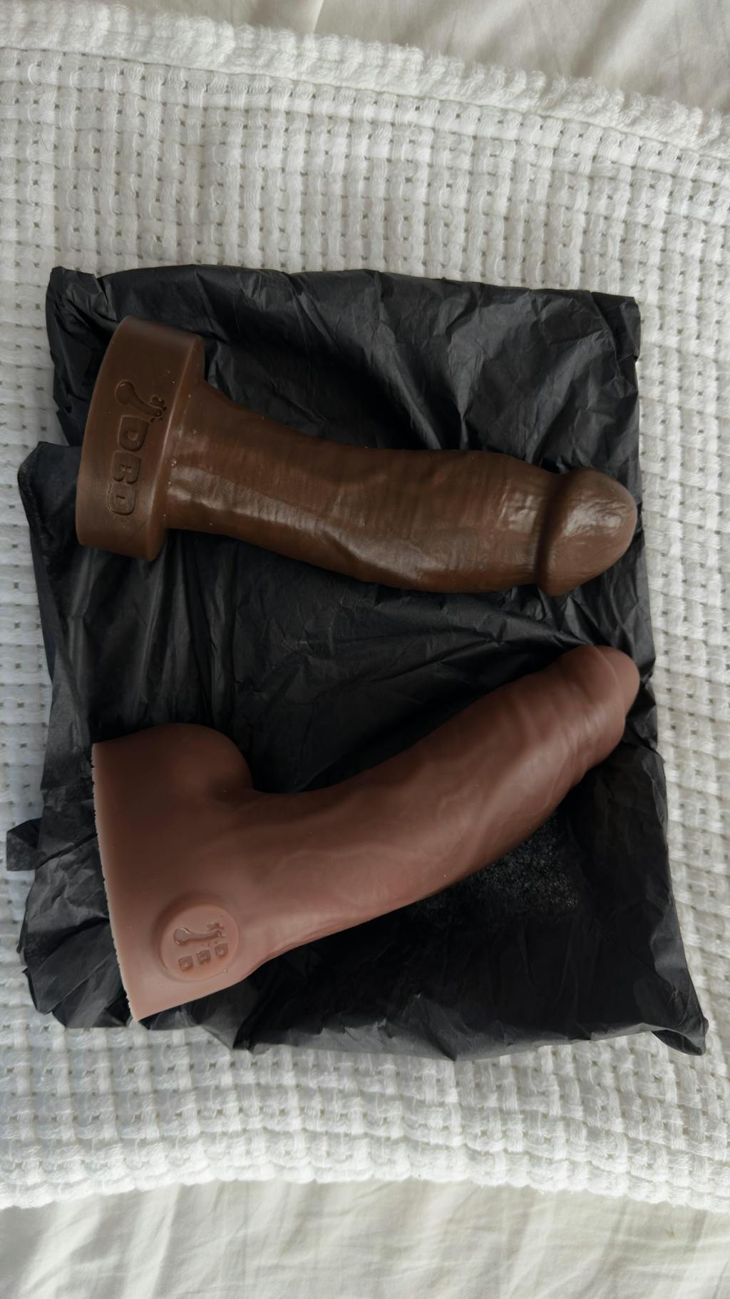 Very satisfied customer. This model is one of my favorite massive squishy realistic toys. I like that this seller offers a wide variety of toy sizes and colors. I happen to really like color D. This toy is really a gorgeous sculpt for its mushroom head. I happen to like how the Duncan model is thicker at the center of the shaft and a bit thinner at the base before it comes the the flared base. I appreciate the lack of balls since it makes the toy harness compatible and easier to thrust by hand if you are doing it manually. I have not actually tried this toy since I just received it. Since this toy is a big size-up for me, I went with a softer silicone. I like the dramatic mushroom head and feel that the softer silicone will make it more manageable for me to accommodate. I highly recommend!